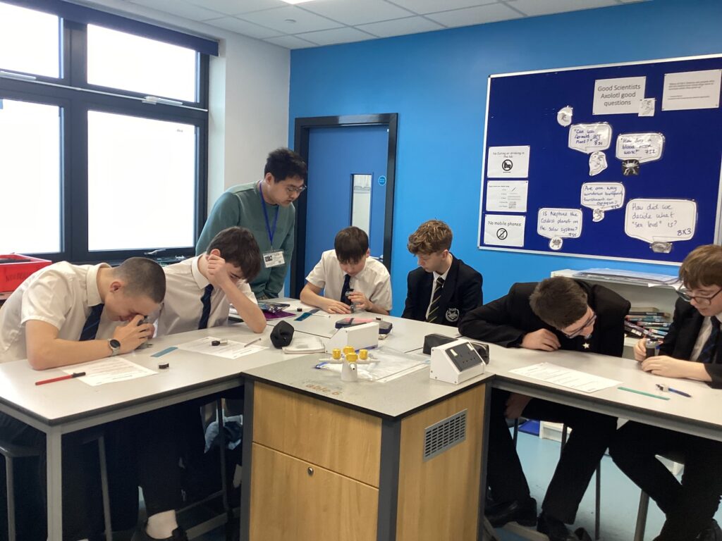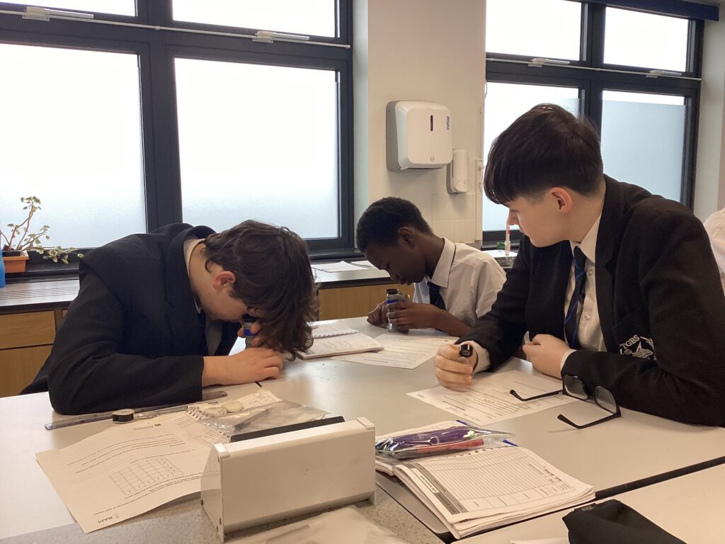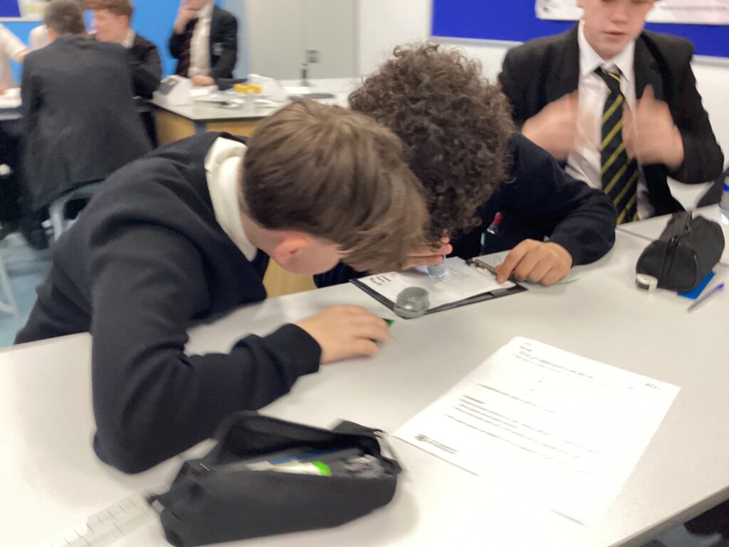 Last week Year 9 pupils enjoyed their second visit from researchers at the University of Birmingham to analyse the particle traps that have been hung around school since the end of October.