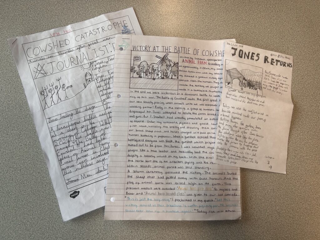 Pupils have been making great progress in writing news articles alongside their study of Animal Farm by George Orwell.  This combination has helped them not only understand the novel’s key themes, such as power, propaganda and control, but also develop their skills in journalistic writing.