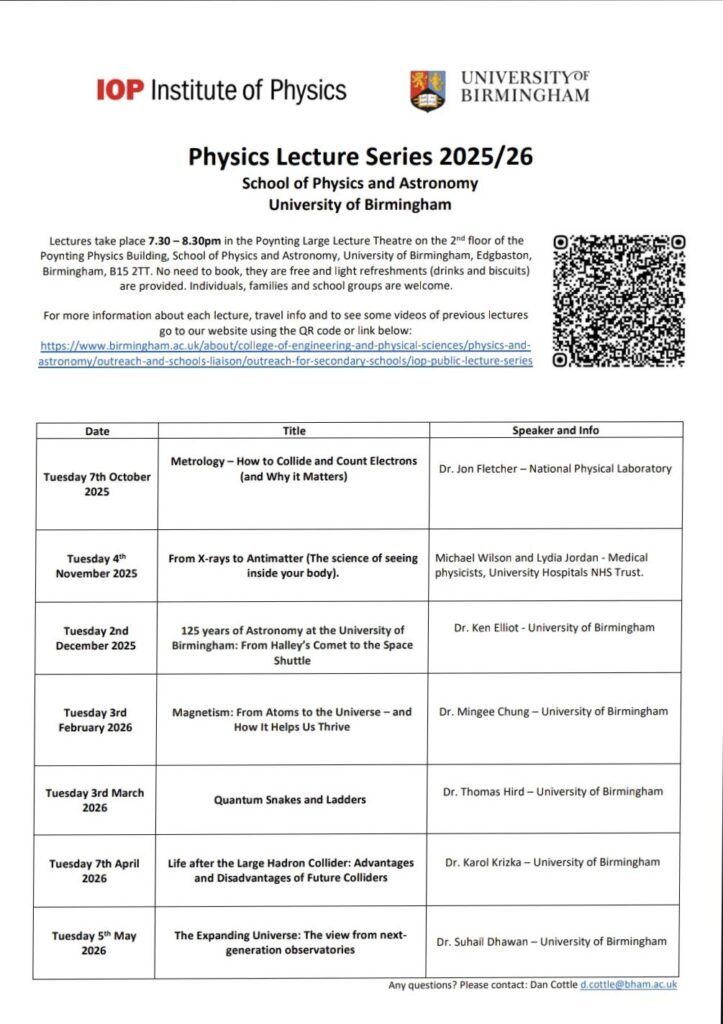 The science department would like to share with you all another brilliant series of lectures that the Institute of Physics is hosting at the University of Birmingham this year. Last year, Cian and Patrick of 9S1 attended many of these and reported back how enlightening they are. Below is a write up about one of the lectures the pupils attended: